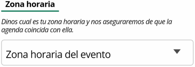En el apartado de Privacidad y Configuración, recuerde marcar la zona horaria del evento.